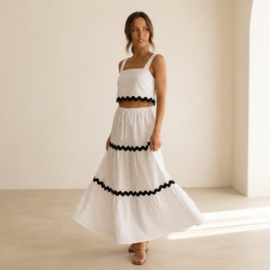 Ahorras 42%Conjunto Riviera™ Falda Midi + Top Ondas